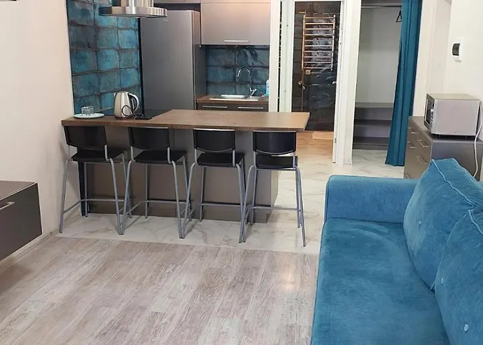 A kitchen is provided at Теремки apartment Теремки apartment is 550 metres from Teremky underground station and just moments from Magelan bus stop.